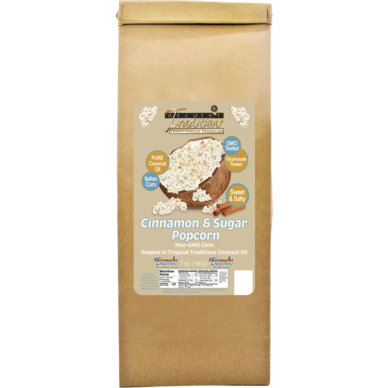 Our GMO-Tested Popcorn is organically grown on a small family farm in Italy and popped in our Tropical Traditions’ Pure Coconut Oil. We then season it with the finest spices available.