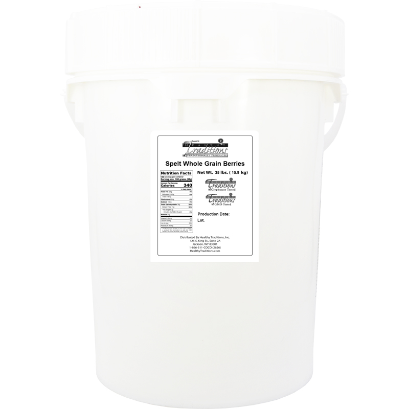 35 lb. Pail – We package the Spelt Whole Grain Berries in a 5 Gallon Life Latch® Screw Top Pail that has a moisture resistant, air-tight seal that will protect your stored grain for many years to come.