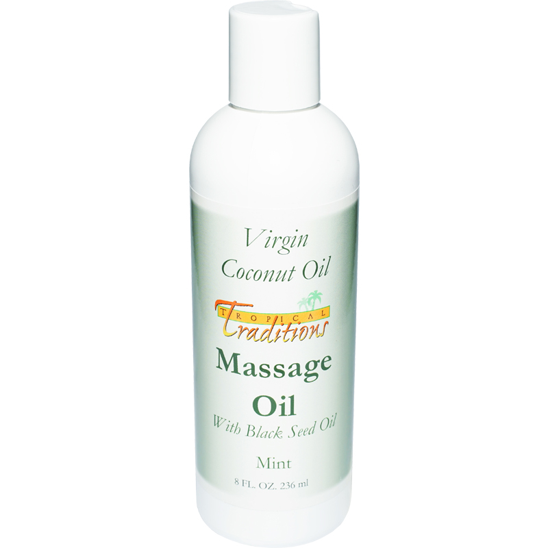 Virgin Coconut Oil Massage Oil with Black Seed Oil – Mint – 8 oz. Massage thoroughly into skin using vigorous strokes to enhance the effects of the essential oils. Leaves your skin soft and silky without feeling greasy. For an invigorating bath, add one tablespoon to bath water.